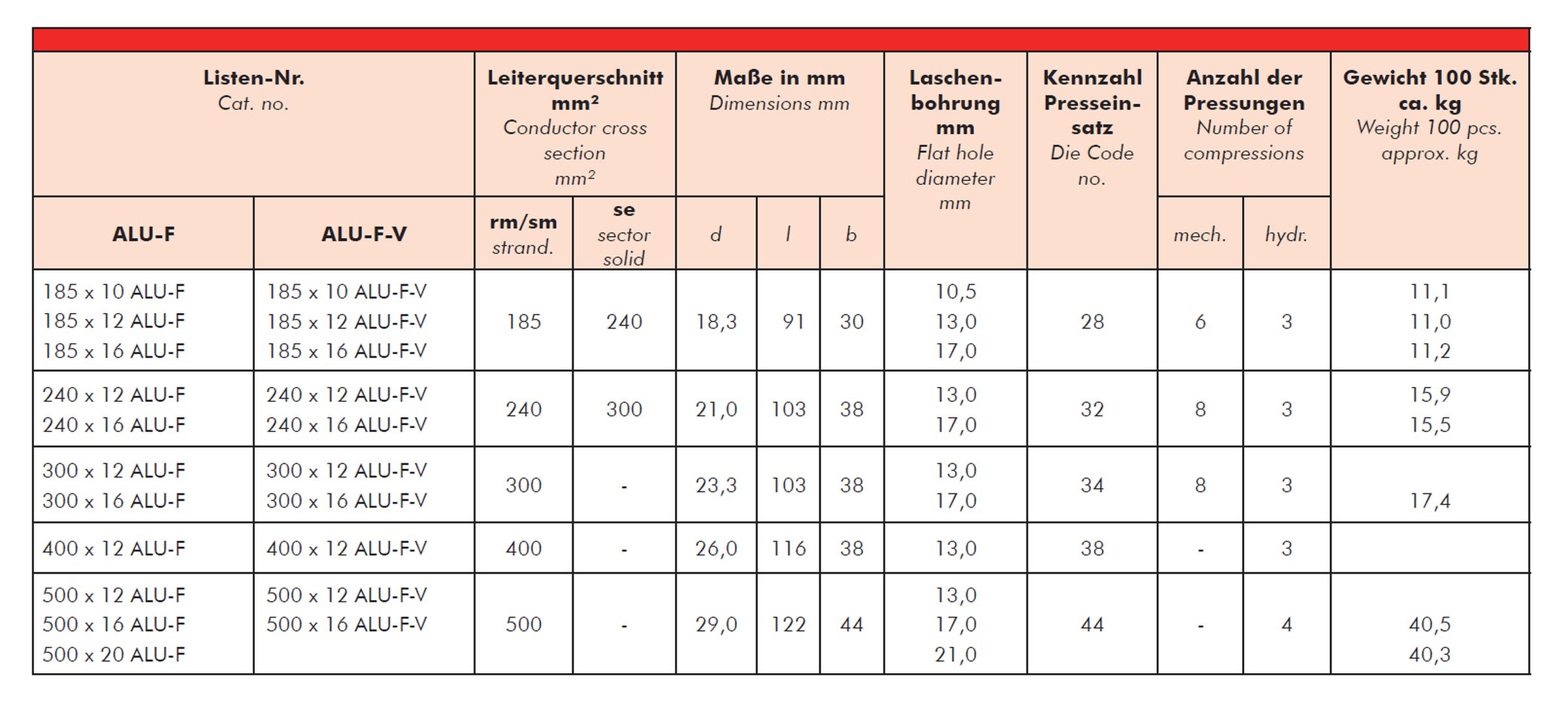 Compression cable lugs, Al, longitudinally sealed, acc. to DIN 46329