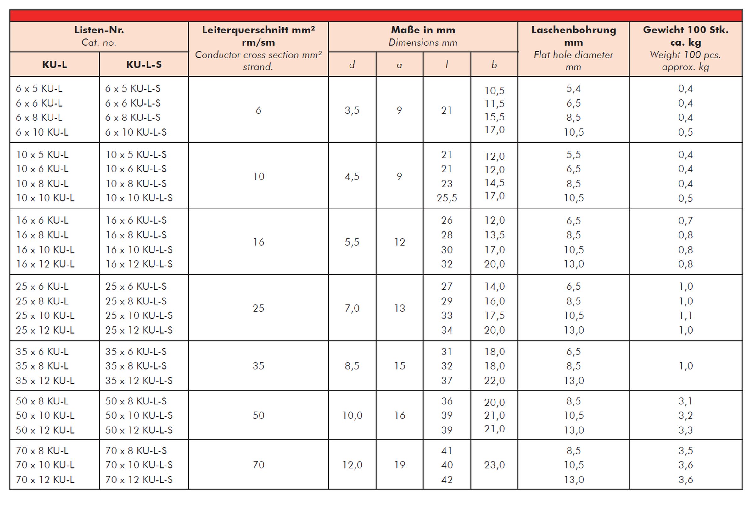 Compression cable lugs, Cu, standard type (KU-L/-S)