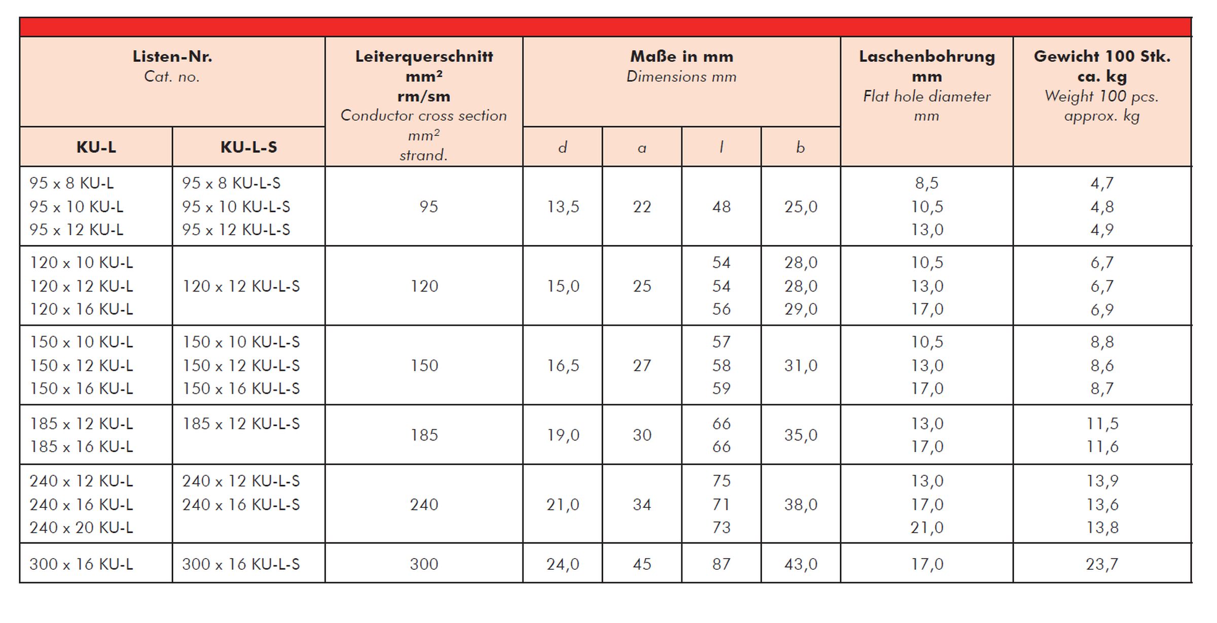 The compression of the KU-L Series does not accord to the DIN requirements. Special compression tools are available.