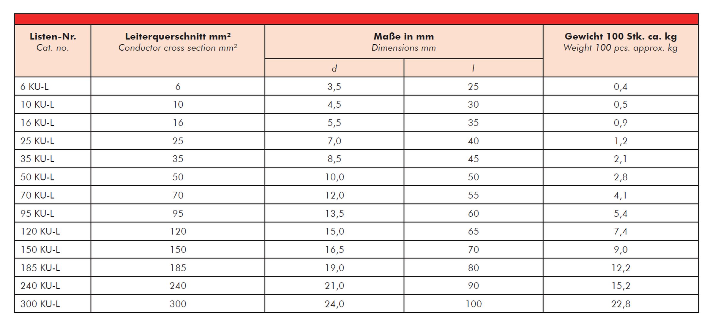 Non-tension compression joints, Cu, 1-10 kV, tin-plated, standard type (KU-L)