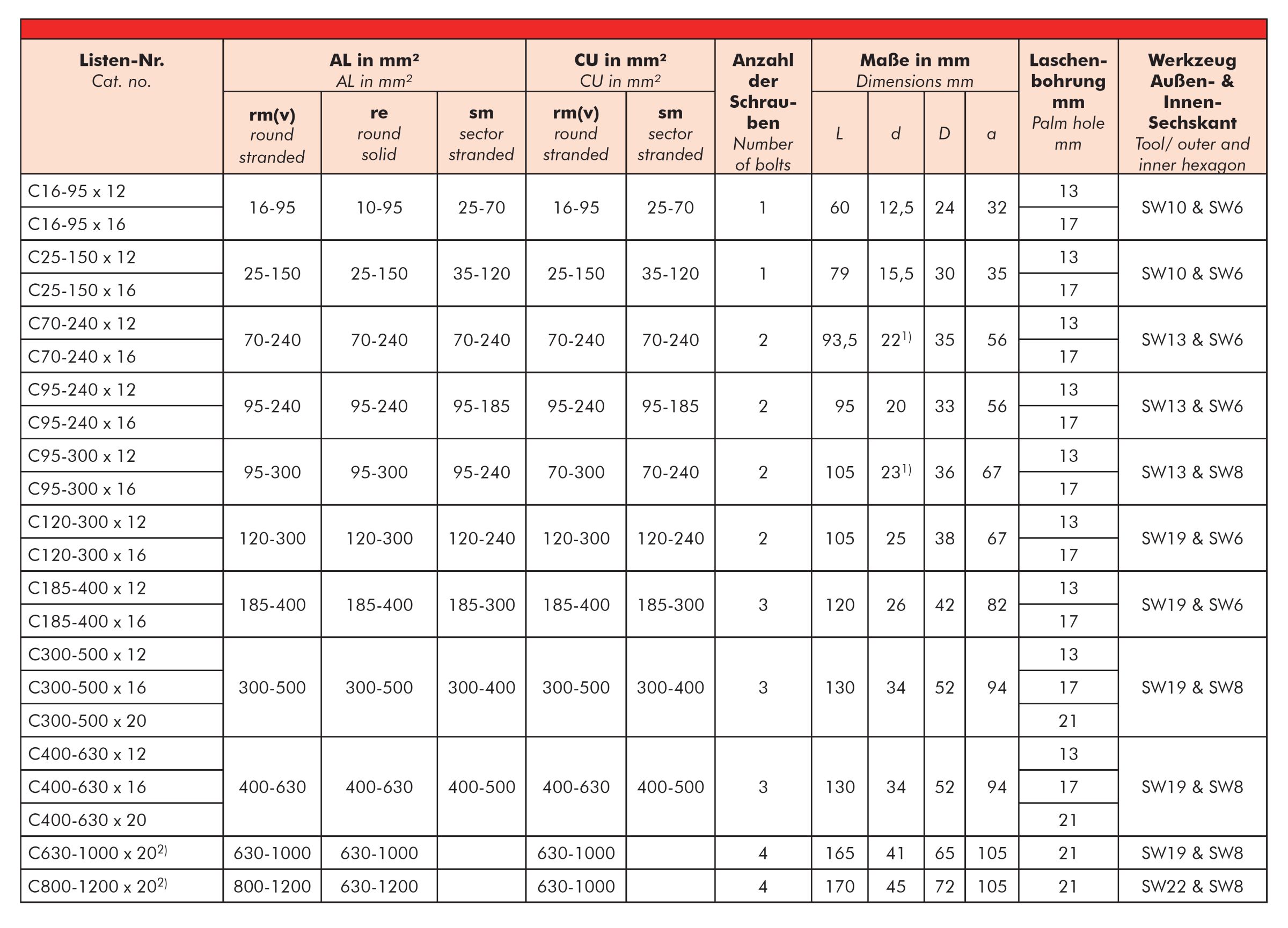 The products, described in this catalogue, are designed for connection of energy cable conductors (Class 1 & 2) with description of round solid (RE), round stranded (RM), as well as sector solid (SE), sector stranded (SM) and round stranded compacted (RMV) exclusively on