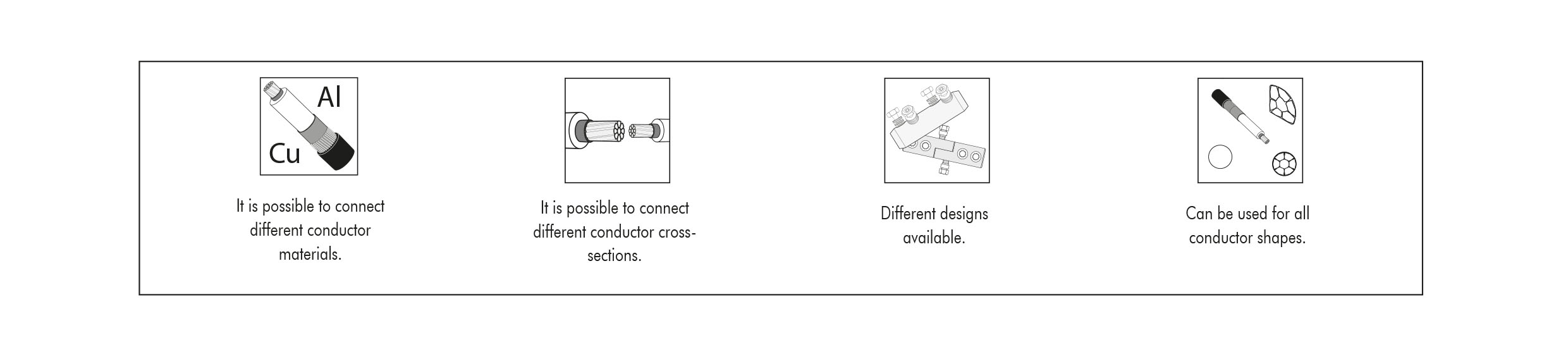 The cross-sectional area from 1.5 mm² to 240 mm² is covered by just 3 types of connectors.