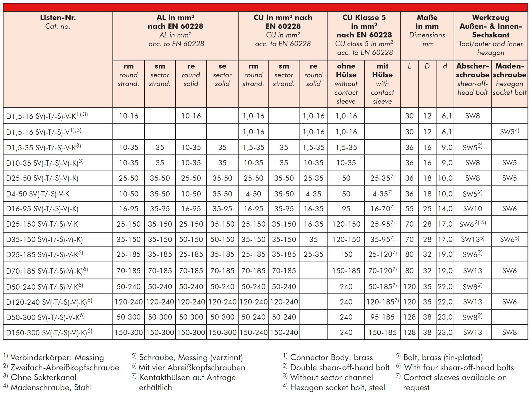 The products, described in this catalogue, are designed for connection of energy cable conductors (Class 1 & 2) with description of round solid (RE), round stranded (RM), as well as sector solid (SE), sector stranded (SM) and round stranded compacted (RMV) exclusively on