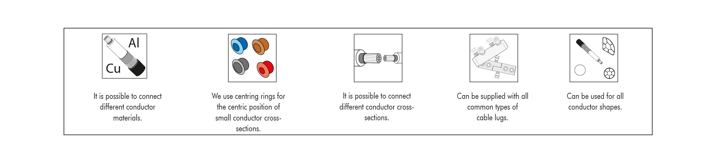 The cross-sectional area from 16 mm² to 1200 mm² is covered by just 4 types of connectors.