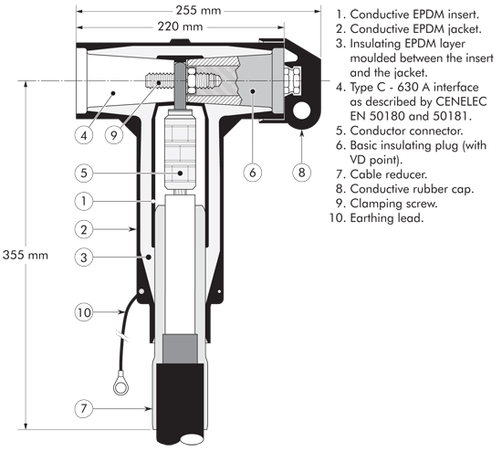 The thick conductive EPDM jacket provides a total safe to touch screen which ensures safety for personnel. Each separable connector is tested for AC withstand and partial discharge prior to leaving the factory.